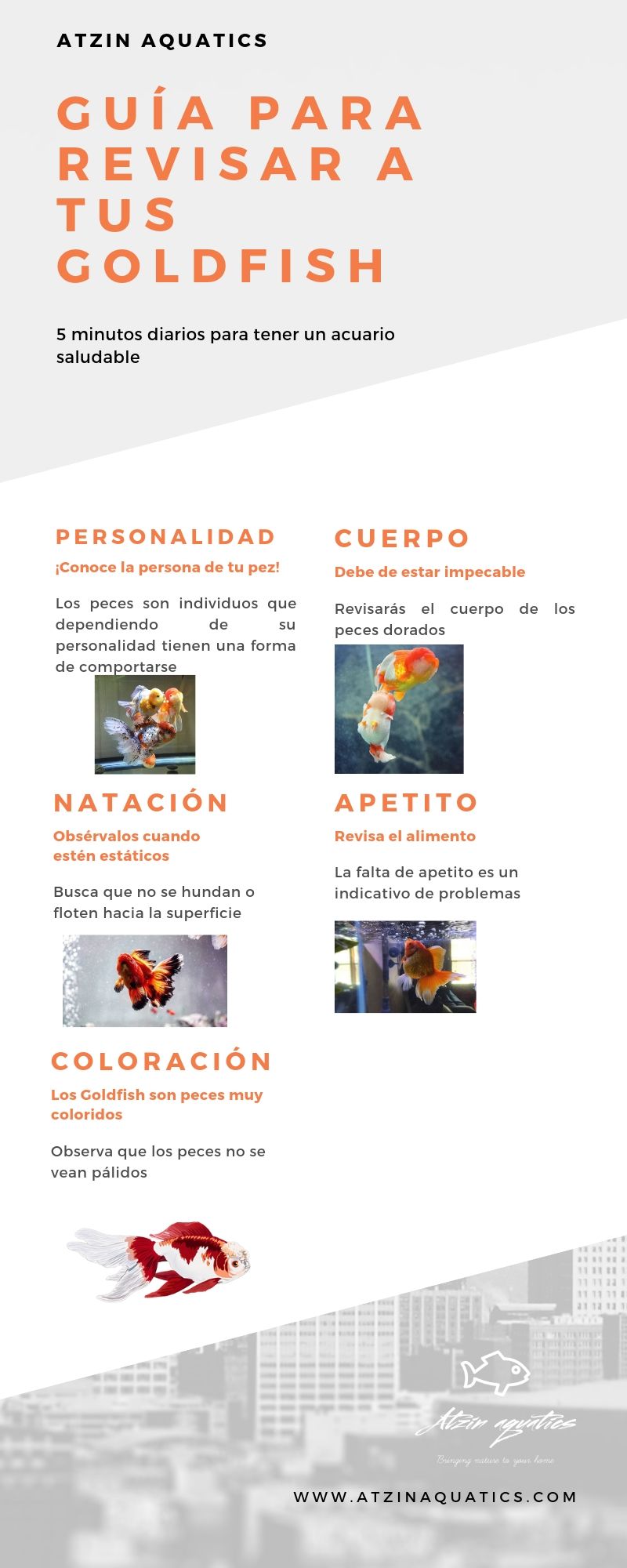 Revisarás el cuerpo de los peces dorados, tu finalidad será asegurarte de que los peces se encuentren impecables, si encuentras algo extraño puedes consultarlo en la web, en caso de no encontrar una respuesta , nosotros podemos ayudarte.