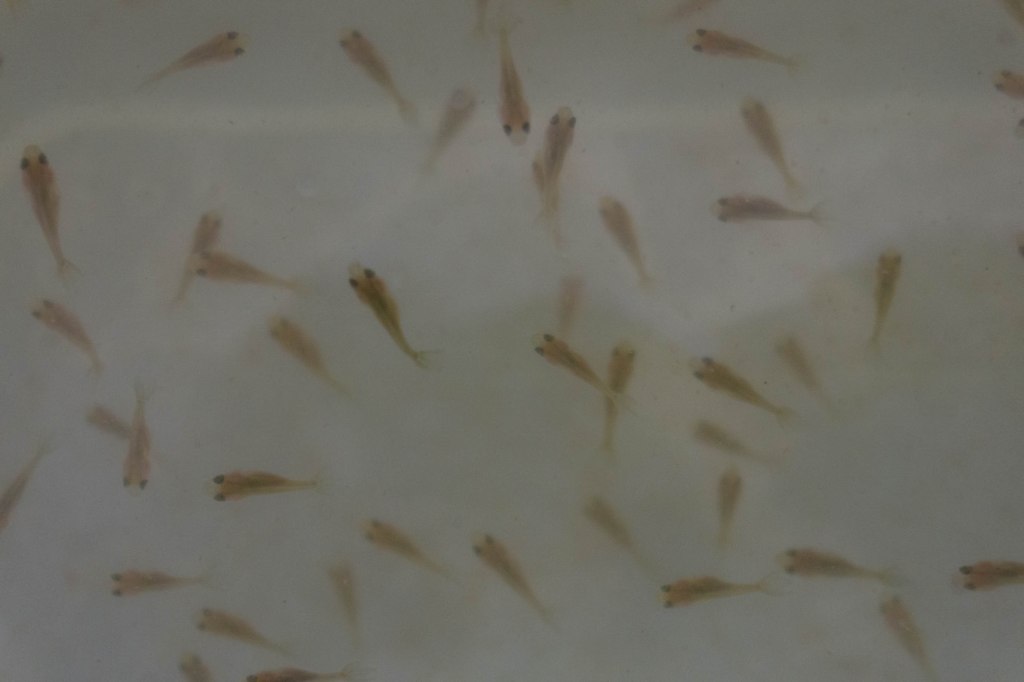 A partir de la segunda semana se pueden descartar ejemplares con deformaciones y problemas de nado, en caso de tener un espacio limitado se puede empezar a descartar desde la primera semana.